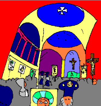 Easter Night service, at the Hagia Sofia church. In Greco-Russian sector.